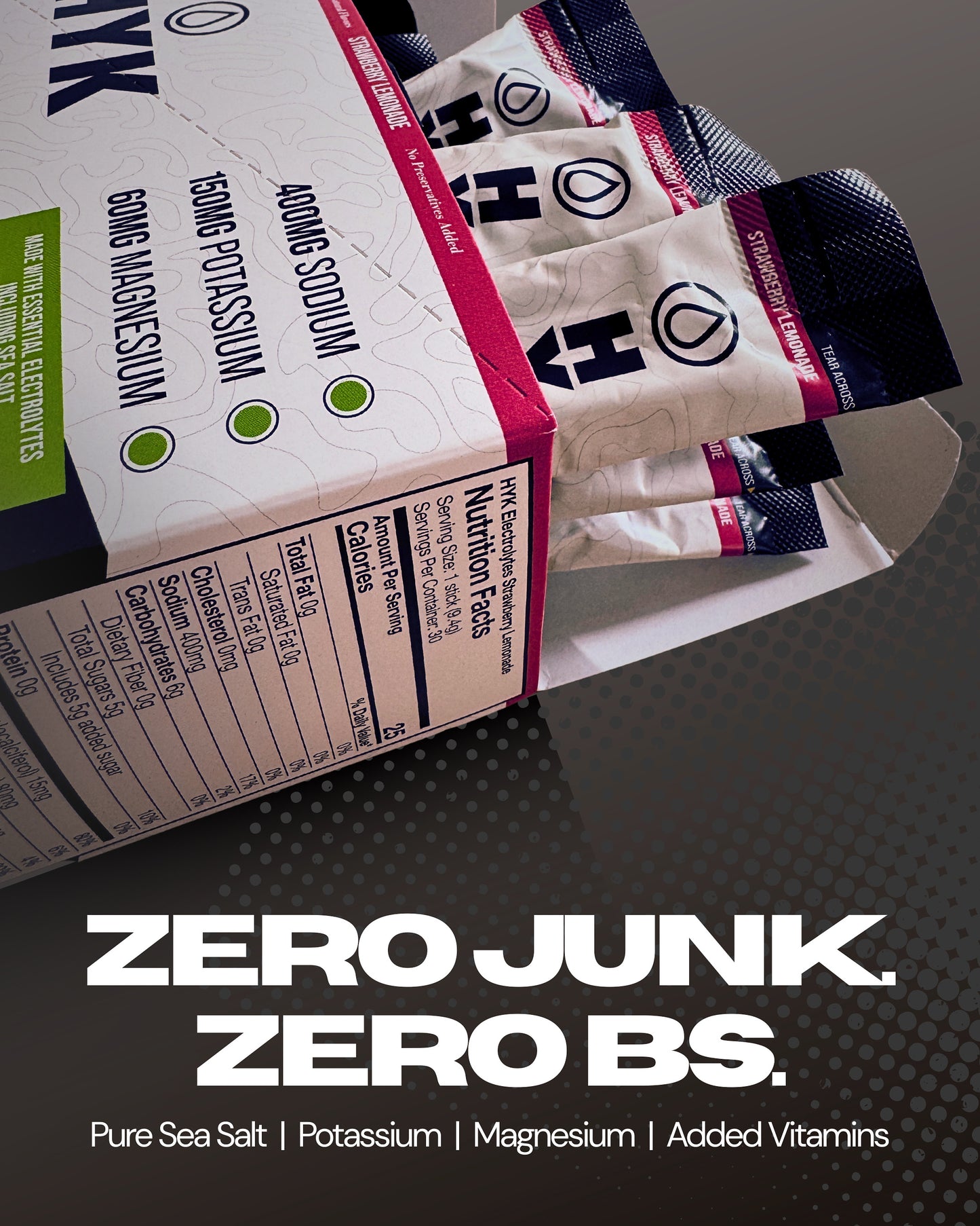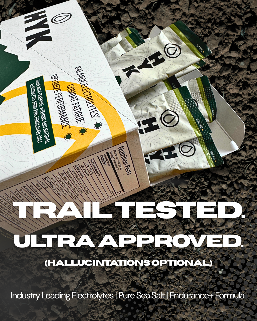 HYK is built for endurance and for those who don't stop at "hydrated". No fluff, no marketing BS, no "proprietary blends", no label confusion, no excuses. While brands like LMNT focus just on table salt (HYK uses sea salt), Liquid IV leans on sugar for hydration, HYK delivers energy, hydration, focus and recovery all in one stick pack. No crashes, no guesswork - just everything your body needs to go longer and push harder.